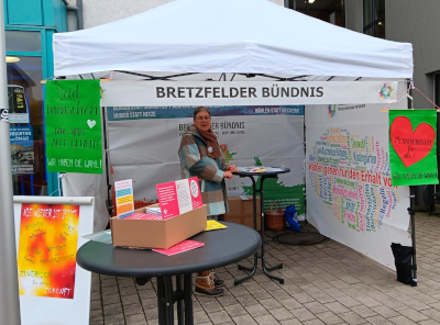 Vor den Kommunal- und Europawahlen am 9. Juni 2024 präsentierten wir uns an verschiedenen Orten der Gemeinde in 1-2wöchigen Abständen per Infostand: mit Pavillon, Banner und Plakaten, Infos der Landeszentrale für politische Bildung, einem Flyer und unserer Bretzfelder Erklärung. Unser Ziel war es, für die Wahlteilnahme zu werben und gegen Intoleranz, Hetze und Extremismus zu argumentieren.